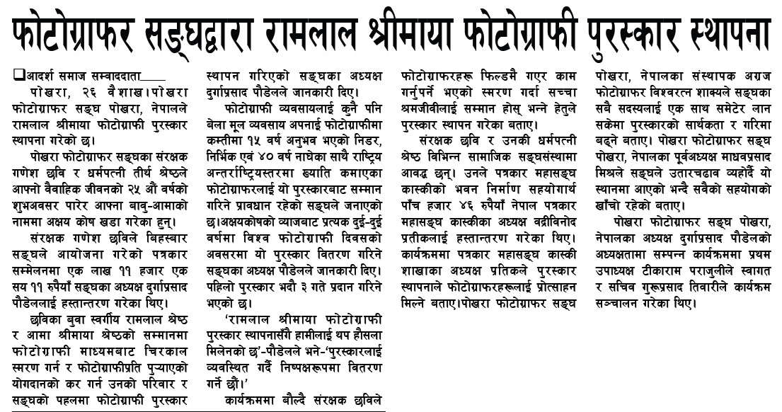 Inauguration of a new award " RAMLAL SHREEMAYA Photography Award" on the occasion of Silver Jubilee of our marriage.